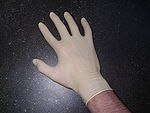 - gants médicaux : le gant médico-chirurgical a été utilisé pour la première fois en 1894 par un médecin du nom de Halsted, pour une intervention chirurgicale à l'hôpital John-Hopkins de Baltimore. Les gants à usage médical sont pour la majorité fabriqués soit à partir de caoutchouc naturel (par exemple en latex) ou synthétique (en cas d'allergie), soit à partir de polymères thermoplastiques.