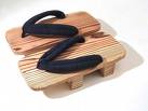 - Sandales à socques en bois montés sur deux taquets de bois tenues au pied par une lanière de tissu passant entre le gros orteil et les autres... (source : clickjapan)